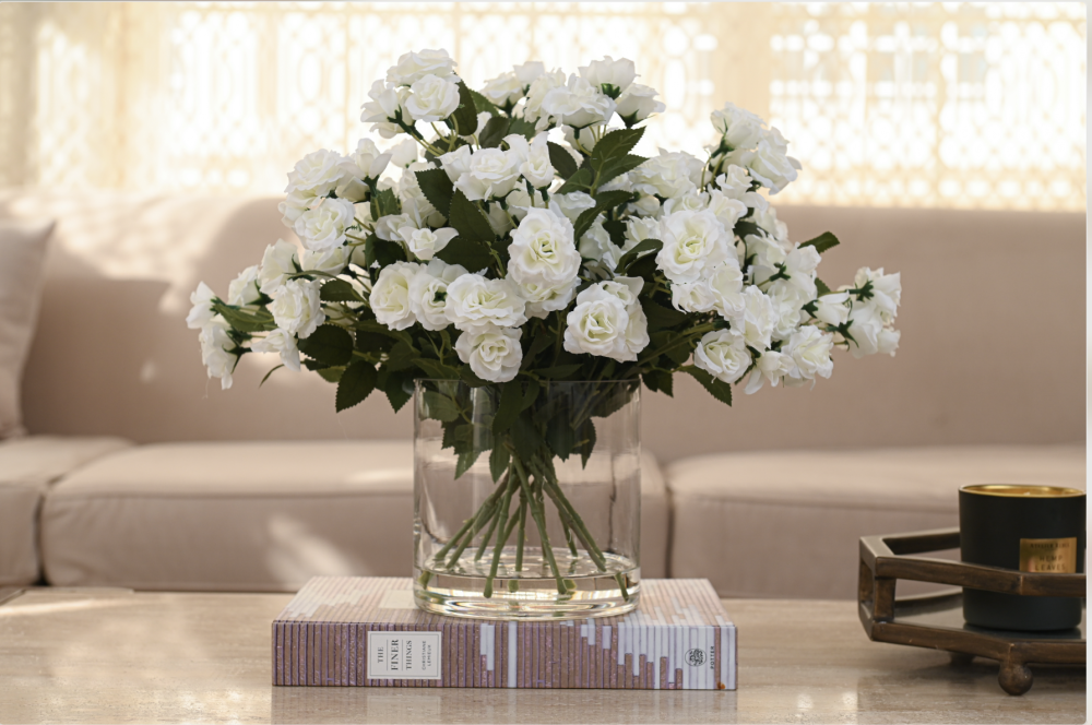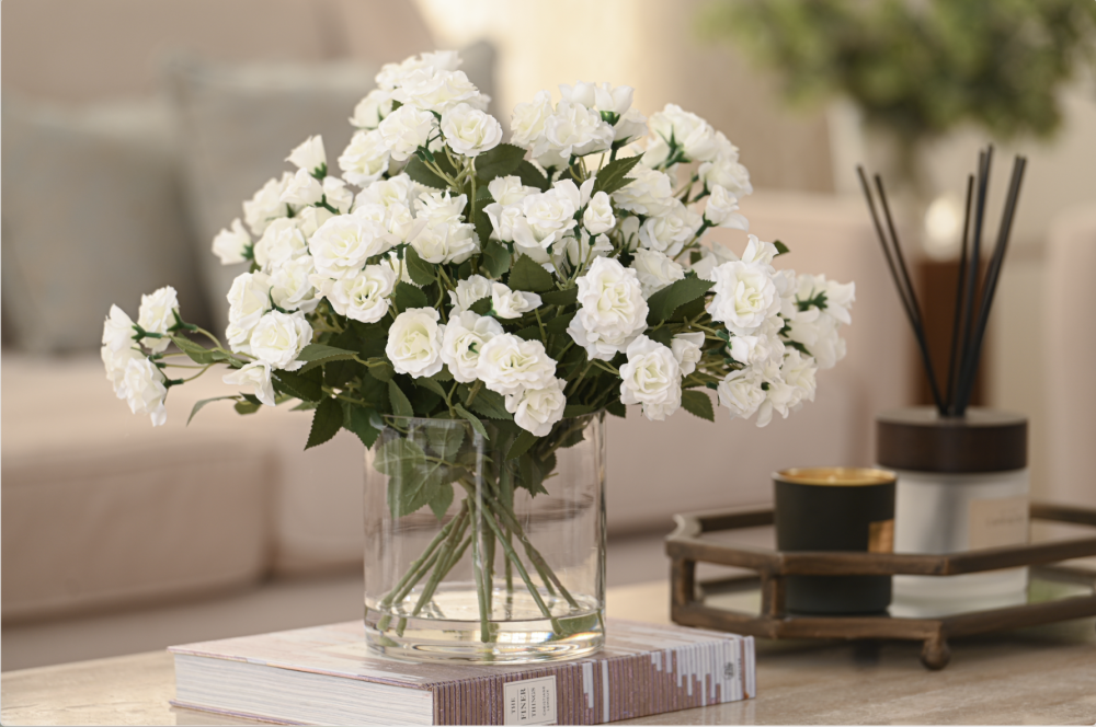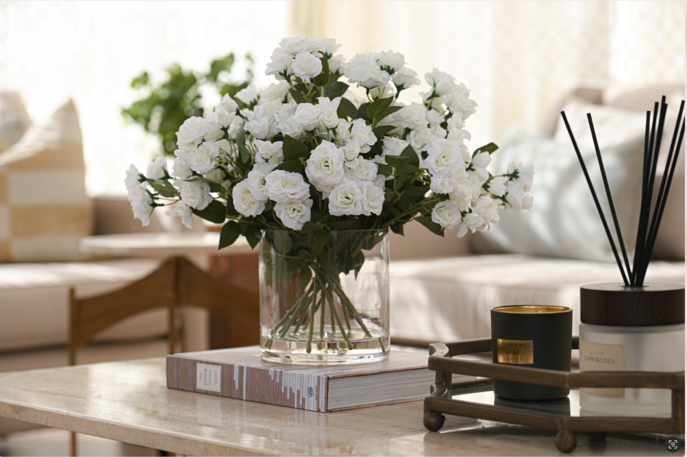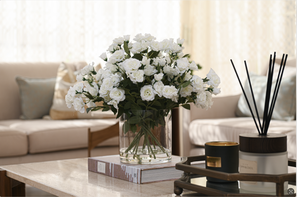 تنسيق ورد صناعي فاخر يجمع بين الجمال الطبيعي والديمومة الراقية.