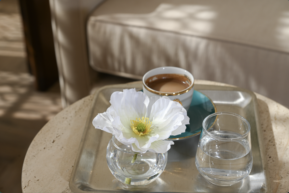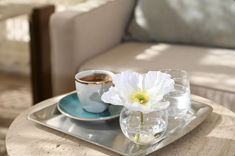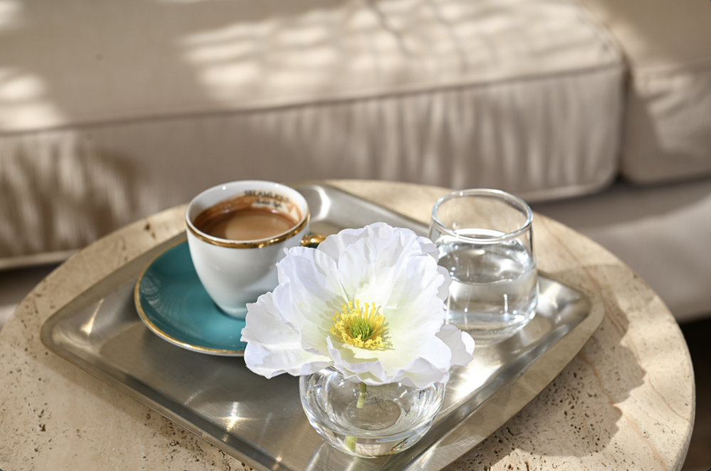 مزهرية صغيرة تحتوي على زهرة مثبته بمادة صلبة