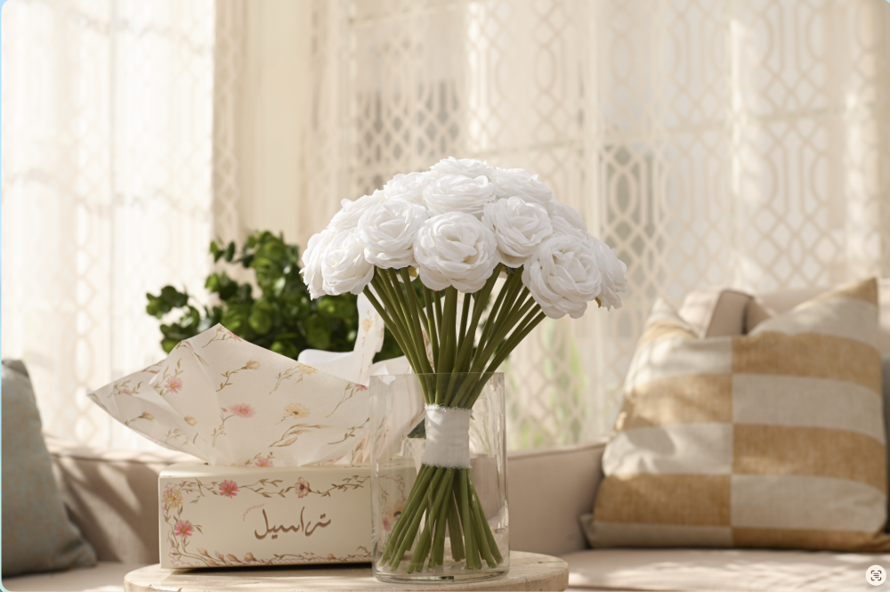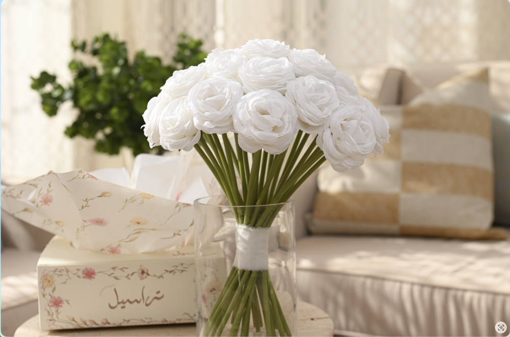 - ورد رانفكل صناعي بخامات فاخرة تحاكي الطبيعي بدقة.